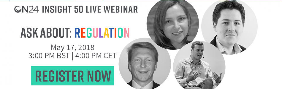 On 17th May at 3 pm, ON24 will host an interactive panel discussion, Insight50. The webinar, Ask About: Regulation, will look at how marketers can deliver timely and impactful campaigns around regulatory change. It will also look at how this can be done, working alongside other business stakeholders such as compliance, legal and internal comms.